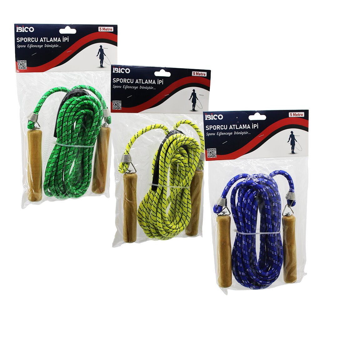 AHŞAP SAPLI ATLAMA İPİ RENKLİ 5MT (5067)
